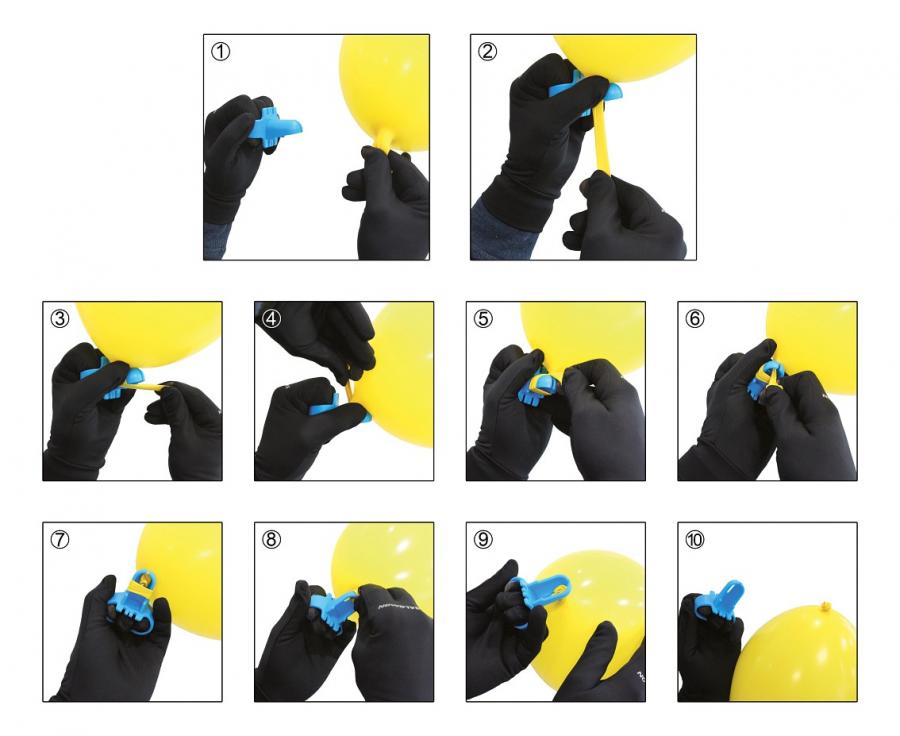 Alat za brzo i jednostavno vezanje balona bez napora. Idealan je za profesionalne dekoratere, animatore, organizatore događanja, ali i za kućnu upotrebu. Omogućuje vezanje balona bez bolova u prstima i noktima, čak i kod većih količina balona.