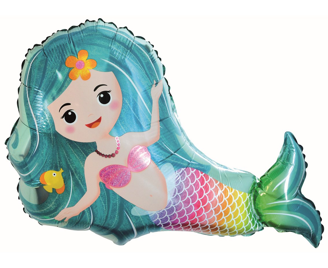 Holo folija balon u obliku sirene, sjajnih višebojnih detalja. Dimenzije cca 66 × 47 cm. Originalno pakiranje, samoventil za jednostavno punjenje. Idealan za punjenje helijem kako bi balon lebdio i bio zvijezda svake morske i rođendanske dekoracije.