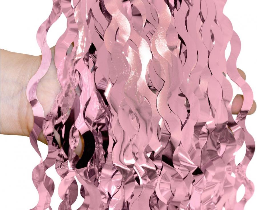 Sjajna roza folija-zavjesa od tankih traka stvara glamuroznu pozadinu za proslave i fotografiranje. Dimenzije 100×200 cm. U pakiranju 1 dekorativna zavjesa.