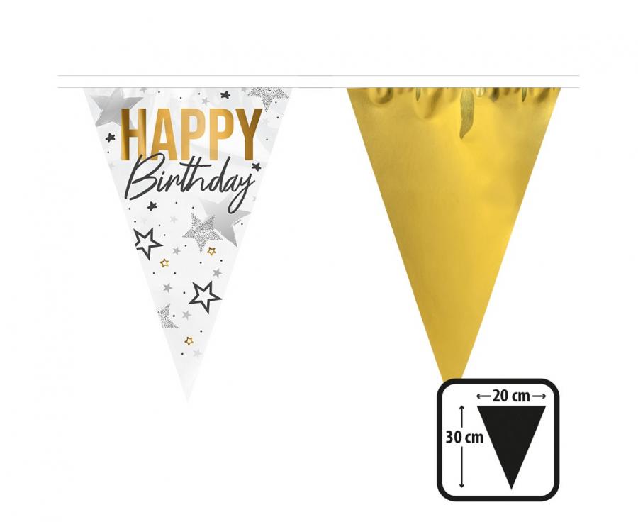 Happy Birthday girlanda zastavica od folije bijelo zlatna 6 m
