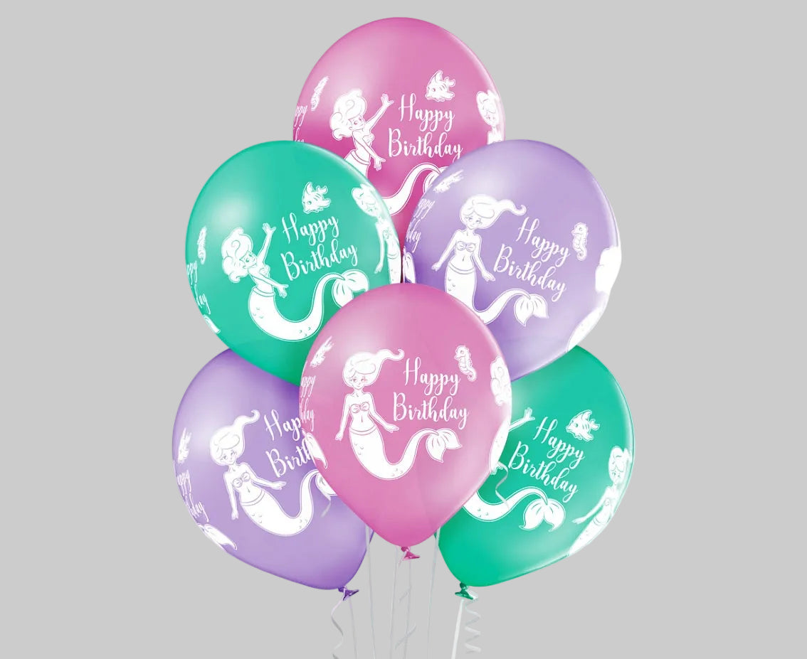 Set od 6 lateks balona s morskim i mermaid motivom, promjera oko 30 cm. Pogodni za punjenje helijem ili zrakom. Dolaze nenapuhani u originalnom pakiranju, jednostavni za korištenje i dekoraciju.