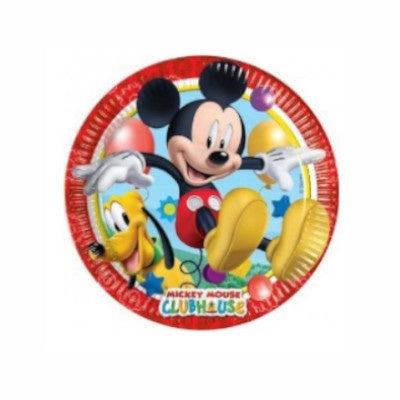 Veseli papirnati tanjuri s Mickeyjem i prijateljima idealni za dječje rođendane. Promjer 20 cm, bez plastike, 8 kom u pakiranju. Za jednokratnu upotrebu.