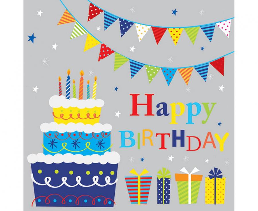 Papirnate salvete za tortu s motivima poklona i girlandi idealne su za rođendane i slavlja. Dimenzija 33x33 cm, pakiranje sadrži 20 komada. Od papira.