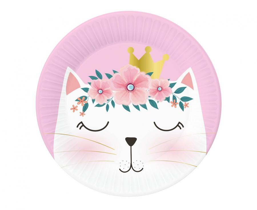 Okrugli papirnati tanjuri promjera 18 cm s motivom mačke. Šareni i zabavni, idealni za dječje zabave i tematske stolove. Pakiranje sadrži 6 komada.