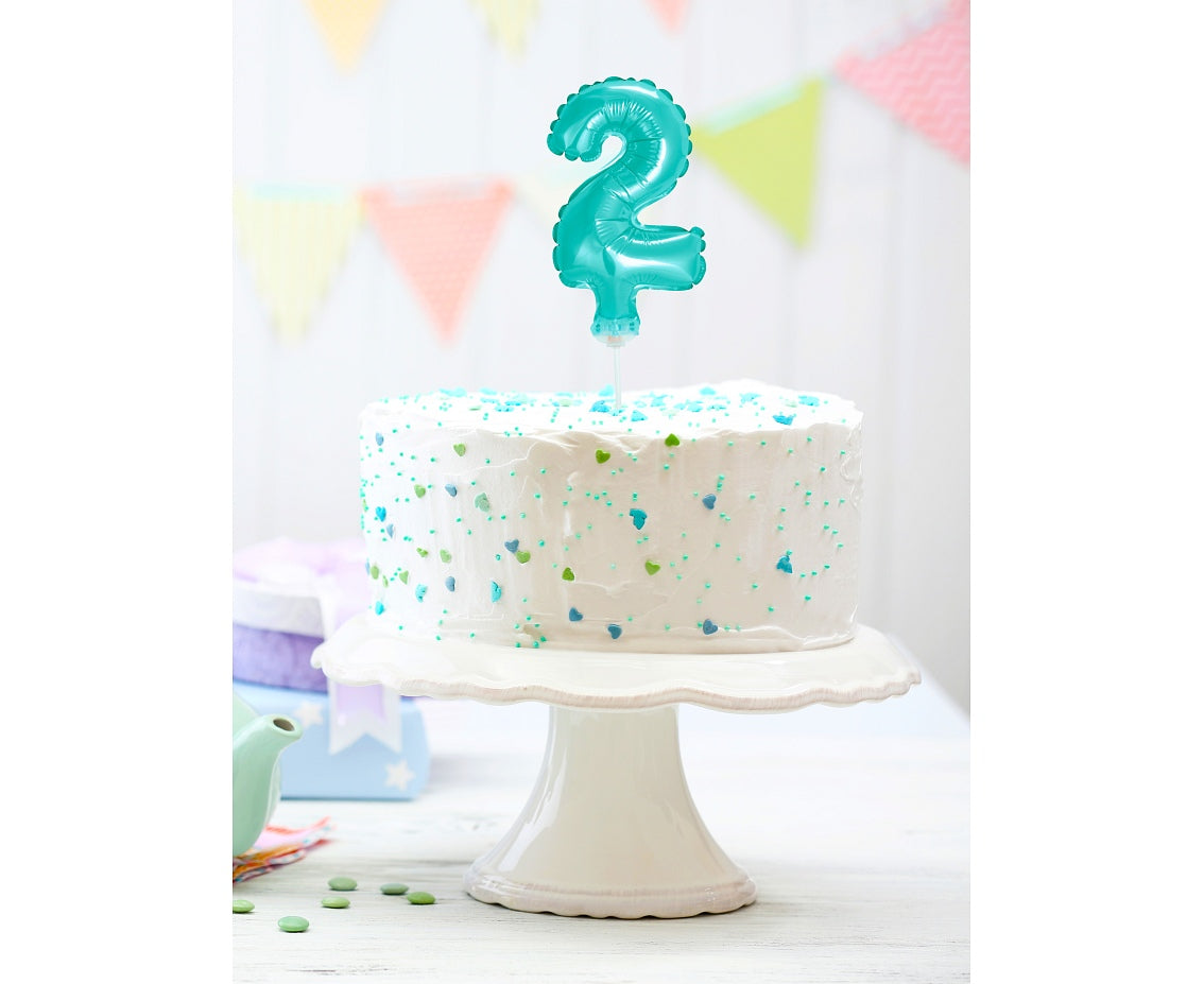 Mini folija balon u obliku broja 2, savršen kao topper za tortu ili dekoraciju slatke mize. Napuhuje se zrakom i dolazi na praktičnom štapiću za lako postavljanje u aranžmane.