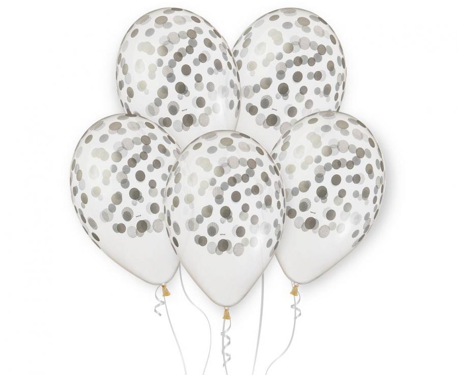 Prozirni baloni sa srebrnim konfetima 33 cm 5 kom Gemar