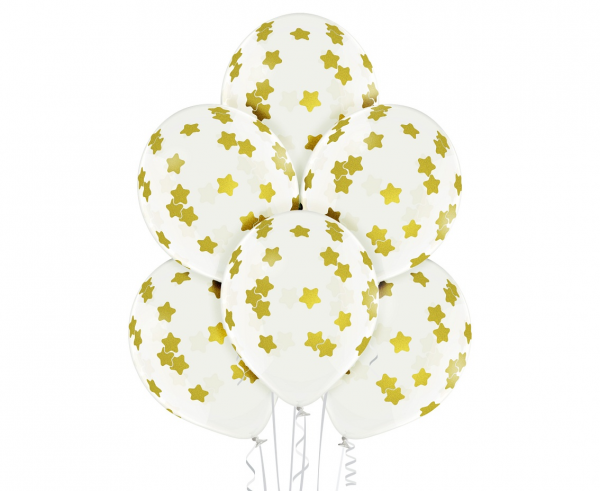 Prozirni lateks baloni sa zlatnim zvjezdicama, 30 cm (6 kom)