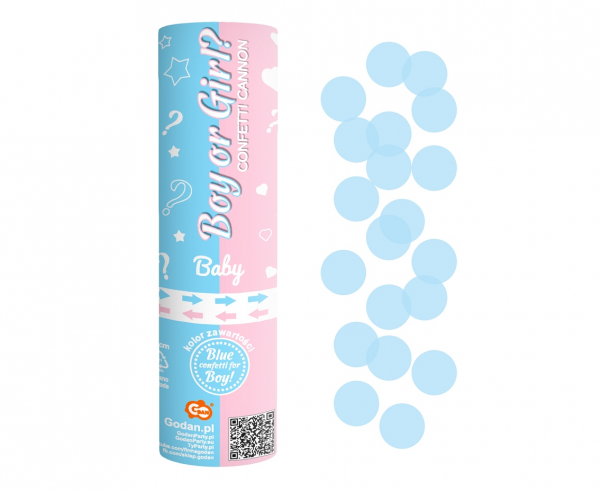 Konfeti top pneumatski Boy or Girl plavi 15 cm otkrivanje